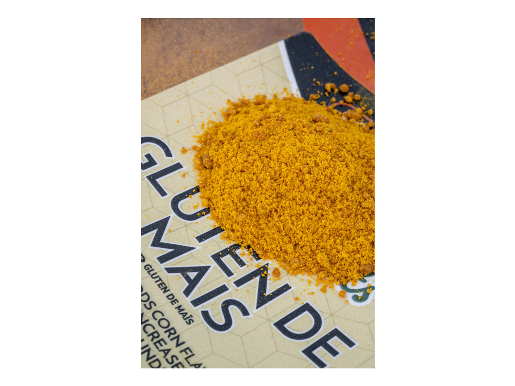 Kukuřičný lepek; dodává krmení kukuřičnou chuť, žlutou barvu a zvyšuje jejich pojivové vlastnosti