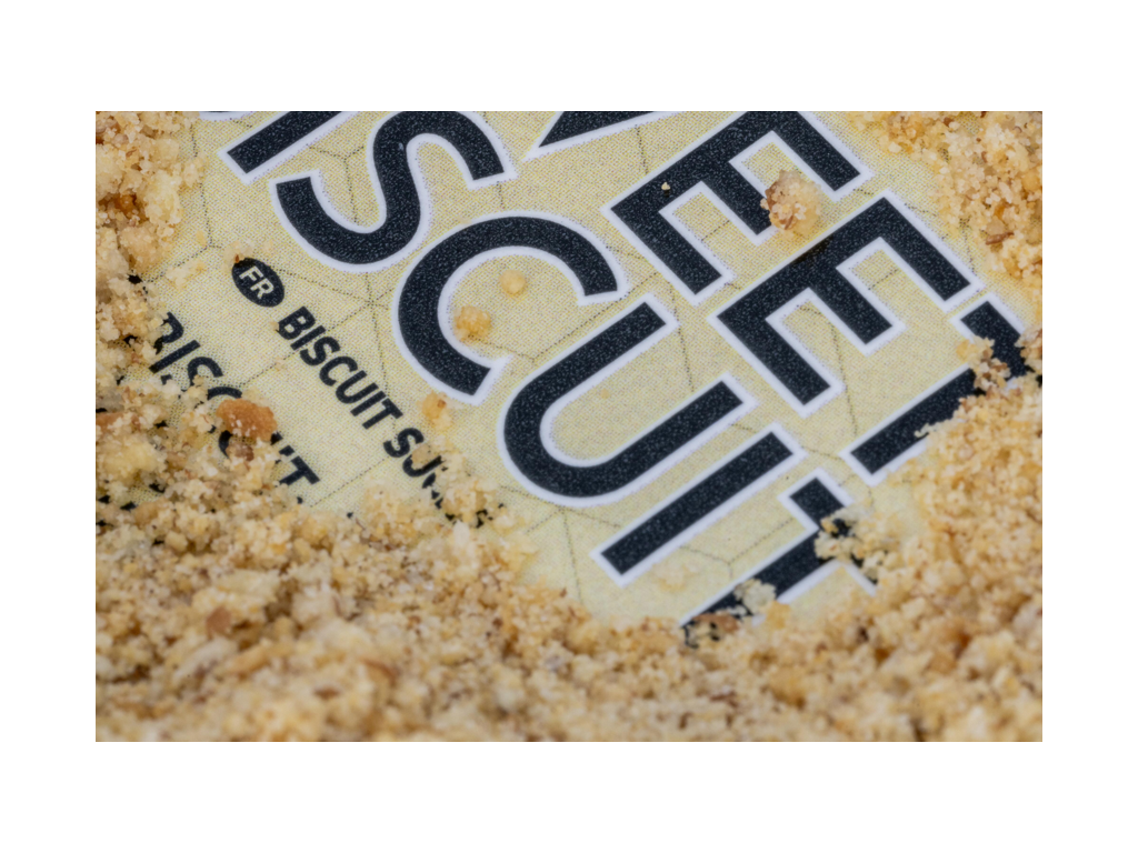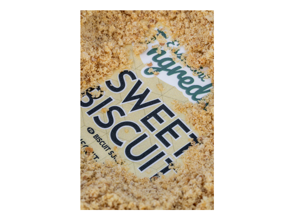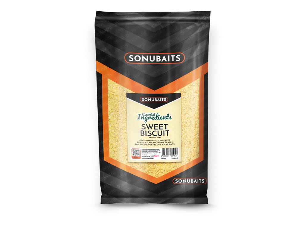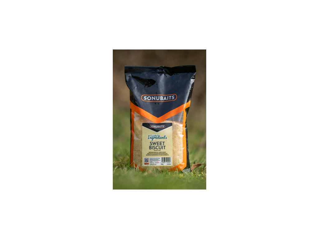 Mleté sušenky; dodávají sladkou sušenkovou chuť a zvyšují pojivost krmení
