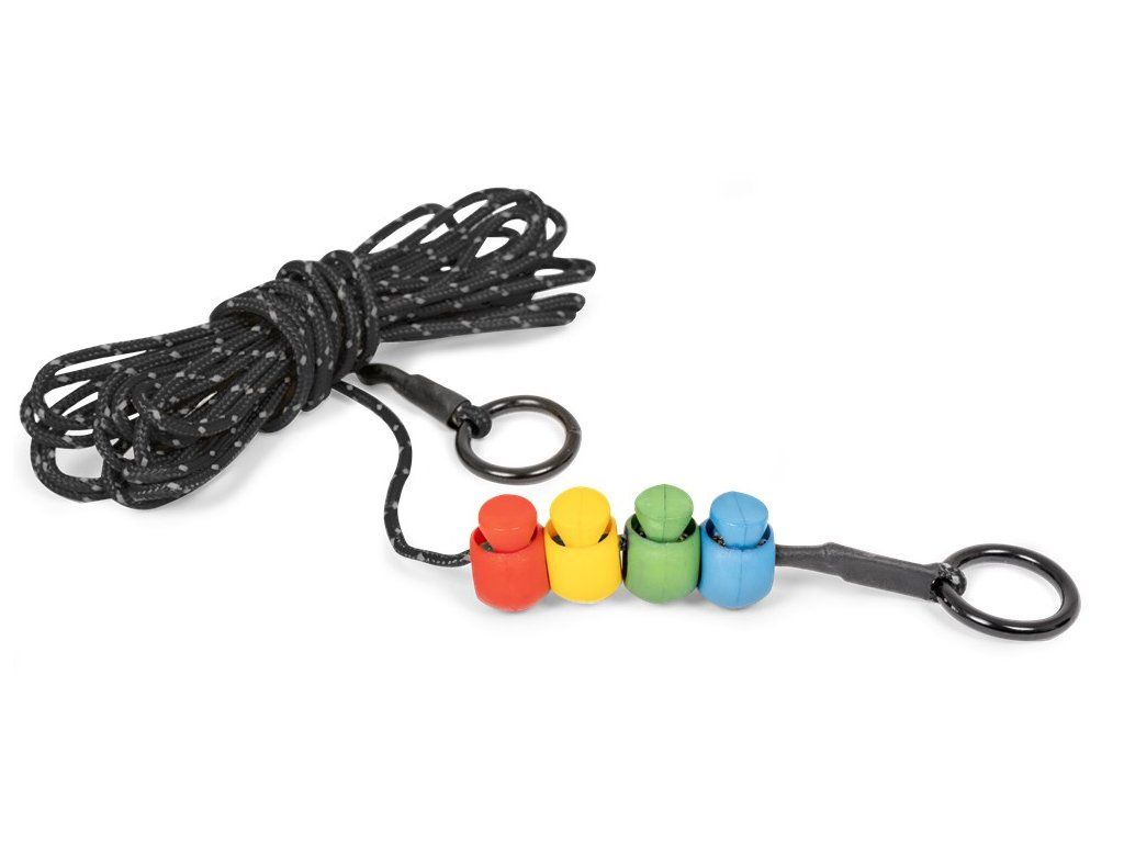 - Šňůra obsahuje barevně odlišené posuvné značky pro lepší přesnost při použití více prutů.